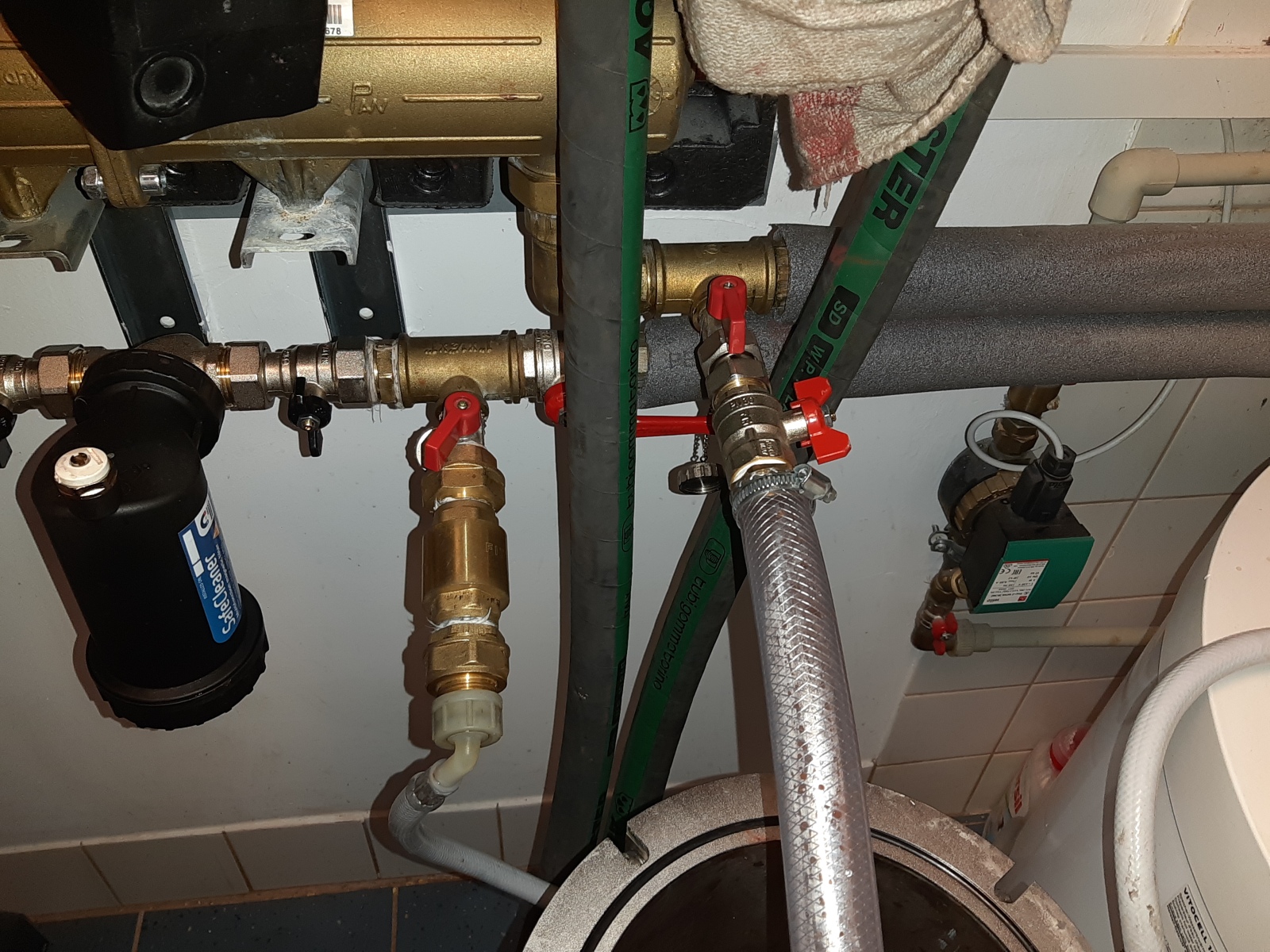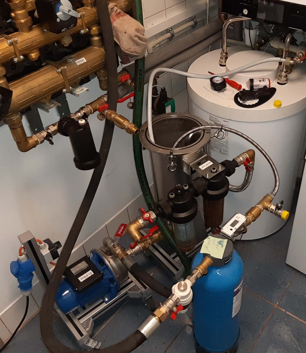 - rozsáhlé čištění topného systému, který se skládá ze tří okruhů – 2 samostatné okruhy podlahového vytápění a radiátorový okruh